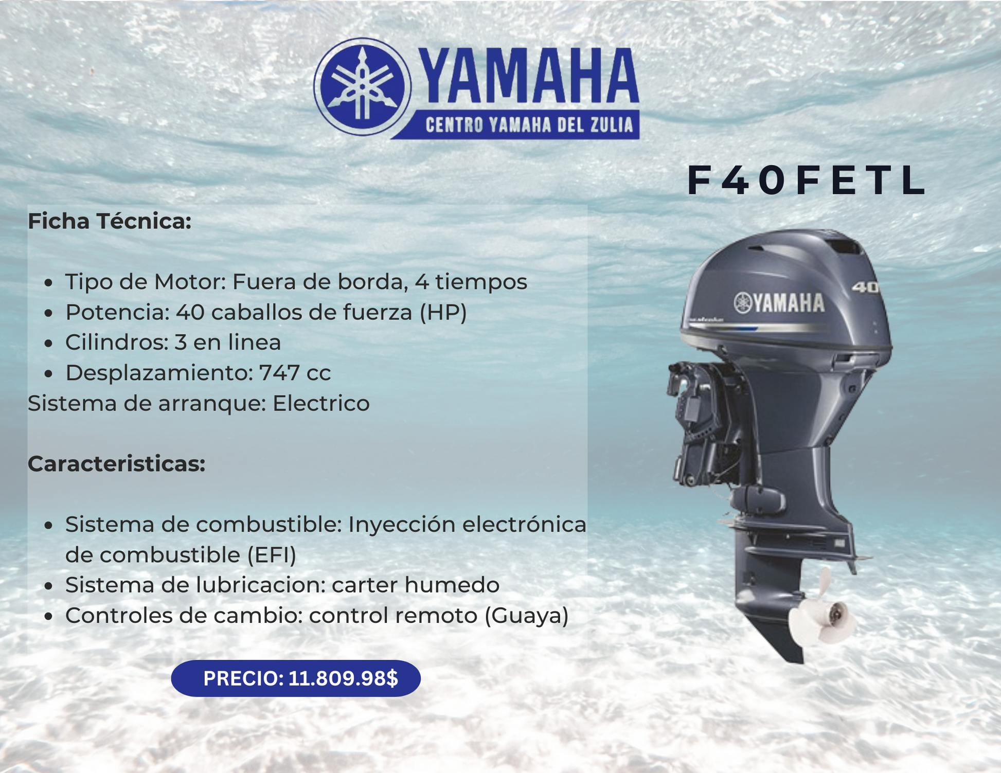 40HP MOTOR FUERA DE BORDA YAMAHA F40FETL